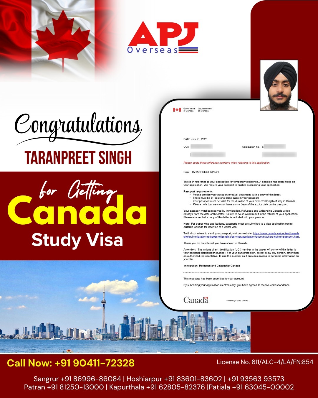 Congratulations to Taranpreet Singh for getting Canada Study Visa.